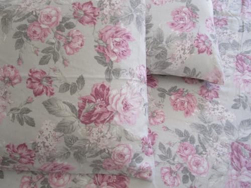 Completo Letto Matrimoniale In Flanella Fantasia FIORI E ROSE Colore:Rosa+Beige Novità 2021!!!! (Rosa)