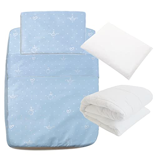 Completo 7 Pezzi per Culla Next To Me Co-Sleeping 100% Cotone Ranforce Premium Oeko Tex 100 con Cuscino, Piumone TOG 2.9, 2 Federe, Sacco con zip, Lenzuolino, Borsa (azzurro)
