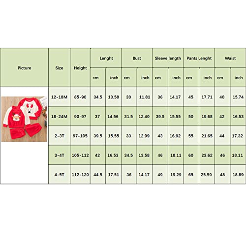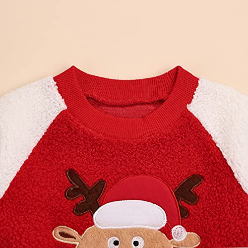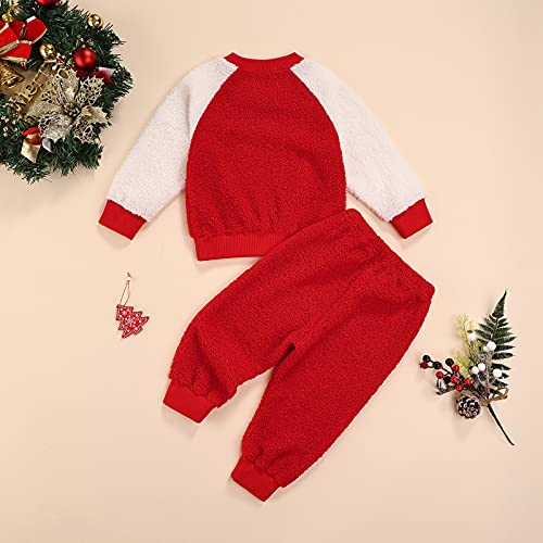 2 PCS Completo Pigiama Bambini Natale Felpa Bimba in Pile Carina Manica Lunga Girocollo Stampato Cervo Natalizio +PantaloniMonopetto Elastica 1-6 Anni Unisex(Rosso Bianco,3-4 Anni)