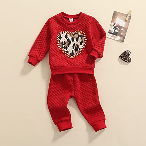Completo Sportivo Bambina Tuta Bambina Stampa Leopardato Maniche Lunghe Felpa Senza Cappuccio+Pantaloni Sportivi (Rosso, 2-3 Anni)