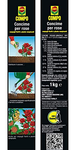 Contenuto: 1 Confezione di Concime per Rose COMPO, Con Guano, Anche per cespugli fioriti e rampicanti, Con misurino dosatore, Peso: 1 kg, Art;