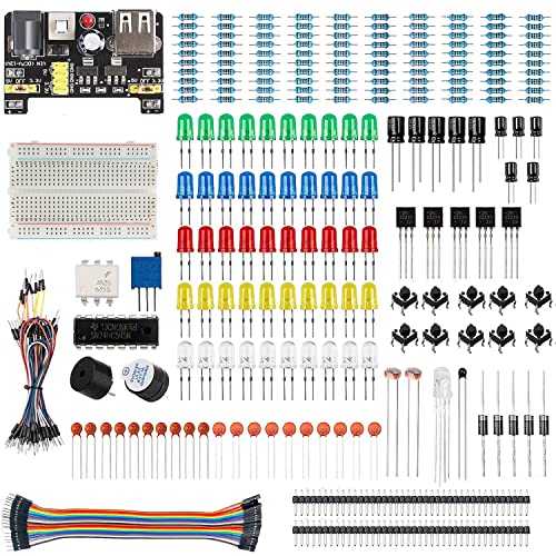 Kit di Componenti Elettronici, Breadboard a 830 fori per UNO Component Pack Starter Kit per principianti compatibile con MEGA2560 con modulo di alimentazione, potenziometro di precisione.