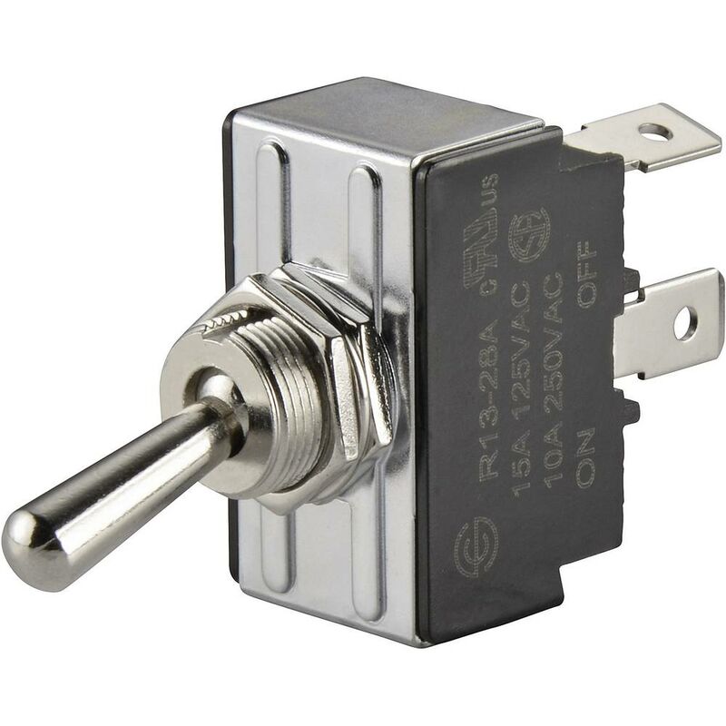Dettagli tecnici Caratteristiche pulsante / interruttore Leva in metallo Collegamento (Componenti) Faston 6,3 mm Colore alloggiamento/pulsante Metallo Contenuto 1 pz. Corrente di commut. max. 10 A Diametro foro di montaggio 12.2 mm Funzioni (pulsante/interruttore) Permanente Numero Poli (num) 1 Tensione di commutazione 250 V/AC Tipo prodotto Interruttore a levetta Interruttore a levetta 250 V/CA 10 A Con scanalatura di guida per incasso in piastra frontale. Incluso nella consegna null Requisiti di sistema null Note Nella descrizione della posizione di commutazione i valori tra parentesi stanno a significare che si tratta di una funzione a posizione momentanea. Illustration similar.