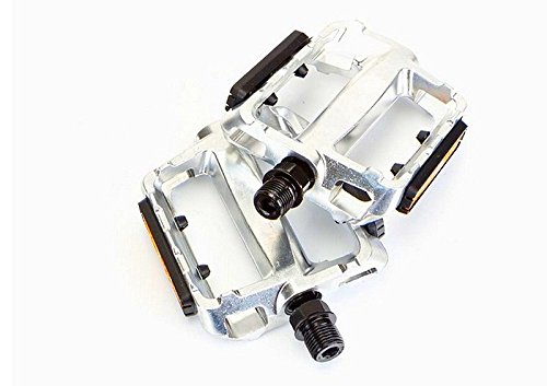 Colore: Argento, Basso profilo, Materiale: Alluminio, Materiale asse: Cr-Mo, Cuscinetti a sfera, Mandrino: 9/16" standard, Riflettori integrati per una maggiore sicurezza, Dimensioni: 100,5 x 78 mm, Peso: 370g / set.