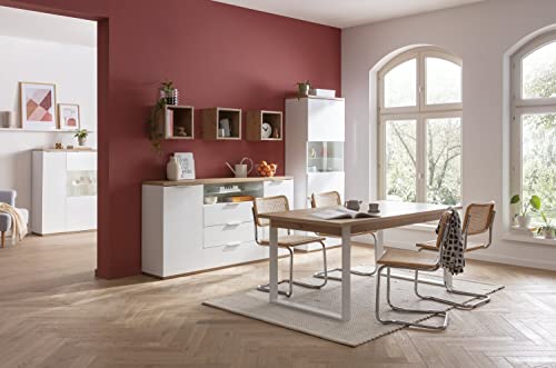 Composad | Credenza della Linea MUNDI con 3 Cassetti, 2 Ante e 1 Vano, Credenza Soggiorno, Madia Cucina, (LxAxP) 180x96x40,50 cm, Colore Rovere Oak Mielato e Bianco laccato, Made in Italy