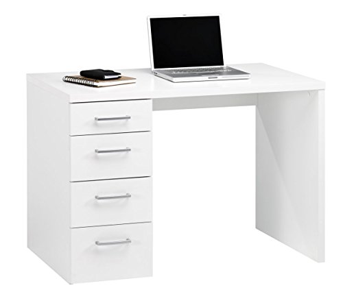 COMPOSAD | Scrivania della Linea MONETA con 4 Cassetti, Scrivania PC con Cassetti, Dimensioni (LxAxP) 110x74x60 cm, Colore bianco, Per Studio, Ufficio, Made in