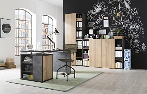 Composad | Ufficio Completo della Linea CORE, Set di 4 Mobili, Scrivania, Libreria, Mobile Contenitore, Mobili Ufficio, Colore Rovere e Grigio Tadao, Made in Italy