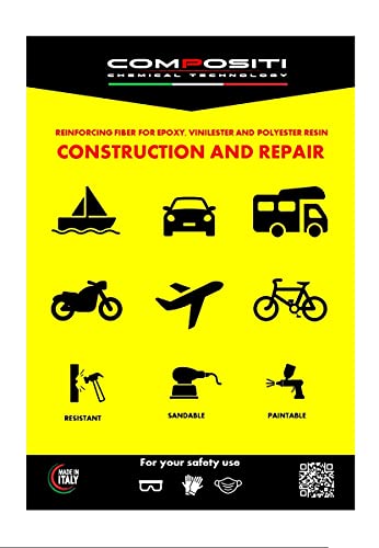 Compositi MAT 375 GR/mq, Vetroresina Mat Fibra di Vetro per Resina Epossidica, Vinilestere e Poliestere, prima scelta, bianco, 125 X 30 CM, Professionale (1)