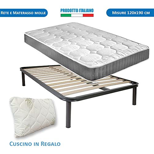 Kit Rete e Materasso piazza e mezzo per letto 120x190 cm + morbido cuscino Top Sleep