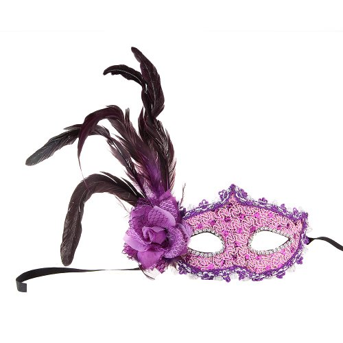 Compre show Maschera Mascherina in Plastica Piume Stile Veneziano Rosa per Festa Carnevale