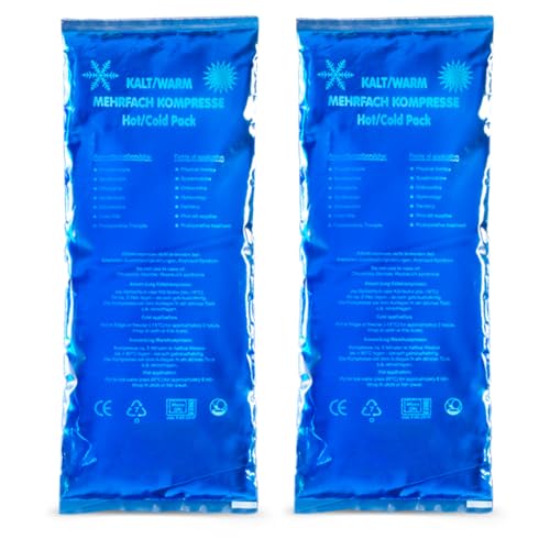 Compressa calda fredda | Set di 2 cuscini refrigeranti in gel riutilizzabili (12 x 29 cm) per lesioni, sollievo dal dolore, punture di insetti, terapia flessibile ecc