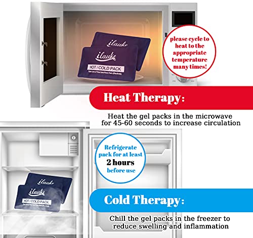 Compresse fredde e calde per il trattamento: il gel congelatore assicura che rimanga freddo o caldo più a lungo. Confezione fredda: in caso di zone gonfie e infiammate, lasciare raffreddare il ghiaccio e calmare l'infiammazione. (Impostare circa 2 ore prima dell'uso in frigorifero). Hot Pack: supporta il processo di guarigione, aumentando la circolazione sanguigna locale e favorendo il rilassamento. (Riscaldare l'acqua calda a 80 °C o nel forno a microonde per 1-2 minuti)