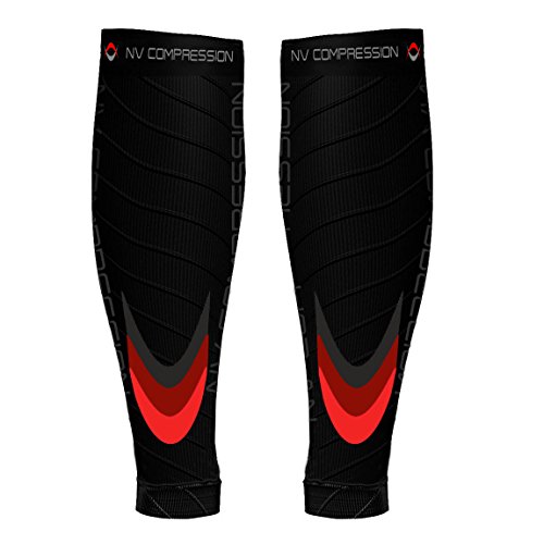 NV Compression Race And Recover Fasce di Compressione per Polpacci - Nero - Calf Guards/Sleeve Socks (Pair) 20-30mmHg - Sports Recovery, Work, Flight - Running, Cycling (BK/Red, L-XL)