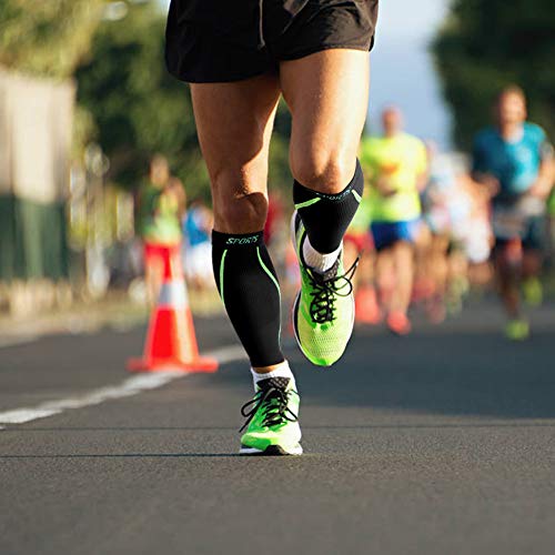 Compressione Polpaccio, Fascia Polpaccio Calze a Compressione Graduata (20 mmhg-25 mmhg) per Corsa, Basket, Ciclismo e Recupero Sportivo, Aumentare la Circolazione Sanguigna, Uomo e Donna(Nero S/M)