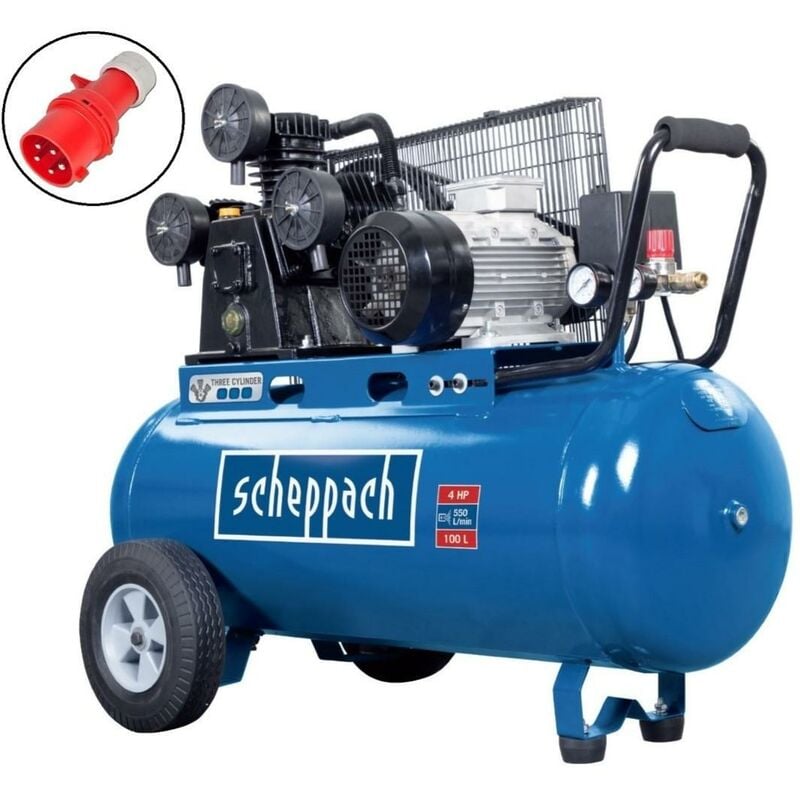 COMPRESSORE ARIA A CINGHIA 100LT 3 CILINDRI 4 CV 10 BAR SCHEPPACH HC550TC 400V HC550TC di Scheppach è un nuovissimo compressore a tre cilindri con trasmissione a cinghia per affrontare le sfide più impegnative. Questo compressore da 100 litri è dotato di un motore da 4 CV, una capacità di aspirazione dell'aria di 500 litri al minuto e una pressione di 10 bar. Ideale per appassionati del fai da te e artigiani. . Potente spostamento d'aria di 550 l / min - Motore ad induzione ad alta efficienza - Max. 10 bar di pressione del serbatoio - Potente motore da 4 CV - Il compressore d'aria a 3 cilindri garantisce un'elevata capacità di aspirazione e un rapido riempimento della nave - Manometro e innesto rapido per pressione di lavoro regolata - Serbatoio da 100 litri - Viene fornito con ruote per una facile manovrabilità - Piedi antivibranti - L'accoppiamento a sgancio rapido consente il funzionamento di 2 utensili pneumatici contemporaneamente Dati tecnici: Dimensioni: 1000 x 420 x 870 mm