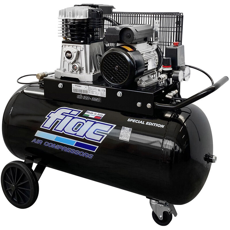 Il compressore d'aria FIAC AB 100/360 MC BLK-PP è stato progettato e costruito per le più svariate applicazioni: dal gonfiaggio di pneumatici al soffiaggio di pezzi meccanici, questa macchina rappresenta una combinazione perfetta di design e performance. Compatto e facilmente trasportabile grazie alle ruote e ad una pratica impugnatura, il compressore monofase FIAC AB 100/360 MC BLK-PP vanta un sistema di trasmissione a cinghia: questa scelta costruttiva, unitamente ai materiali di alta qualità adoperati, fanno di questo compressore una macchina sicura e resistente. Nonostante una potenza di ben 2.2 kW ed un serbatoio dalla capacità di 100 L, il compressore FIAC AB 100/360 MC BLK-PP è estremamente silenzioso, così da poterlo impiegare anche in ambienti in cui è richiesto il rispetto di determinate emissioni sonore. Il basso numero di giri (1213 rpm) si traduce in maggiori prestazioni, in aria compressa a temperature più basse ed in una minore usura del gruppo pompante. Si tratta