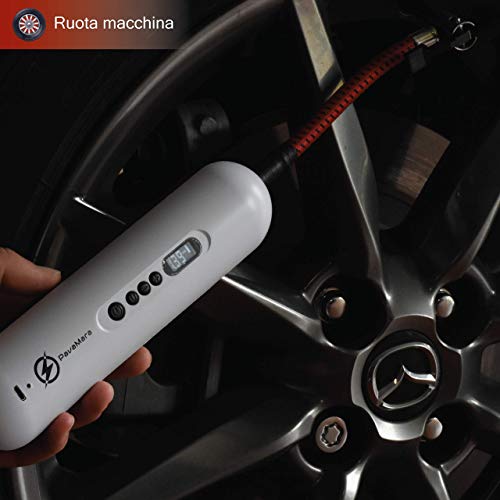 PM Compressore Aria Portatile per Bici da Corsa/Auto/Moto. Compressore Portatile, Mini compressore Nero. Pompa Elettrica 12v con Batteria Ricaricabile