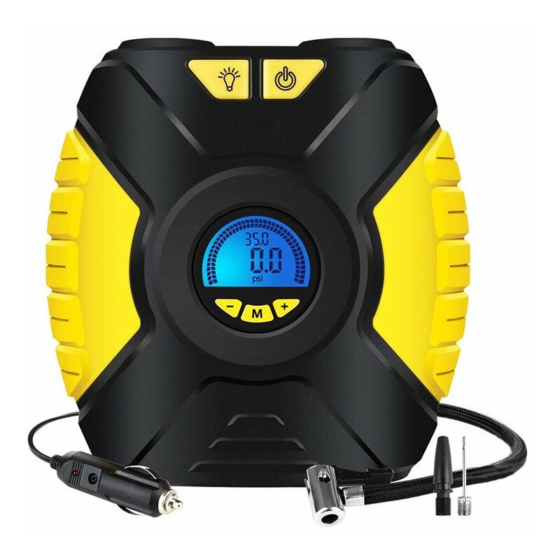 Facile da usare - : basta collegare questa pompa per pneumatici automatica alla presa da 12 V della tua auto e collegare il tubo al pneumatico che desideri gonfiare. Il display digitale mostra la pressione attuale ed è possibile commutare tra diverse unità di pressione (bar, kPa, psi, Kg/cm²). Si spegnerà automaticamente al raggiungimento della pressione preimpostata. Gonfiarlo ti costerà meno tempo e fatica rispetto al gonfiaggio manuale. 【Gonfiaggio veloce】: la nostra pompa elettrica per pneumatici contiene una pompa turbo, che è più potente, più silenziosa e più affidabile delle pompe tradizionali. Gonfia i pneumatici per auto 195/65R15 da 0 a 35 psi in 5 minuti. Questo strumento è utile se il tuo pneumatico scoppia sulla strada e devi rigonfiarlo. È perfetto per il campeggio quando è necessario gonfiare materassi ad aria, boe o giocattoli per bambini. 【Pompa d'aria multifunzionale】: questa pompa per auto compatta ha il design più conciso, tutti i suoi fili sono ben piegati, quindi