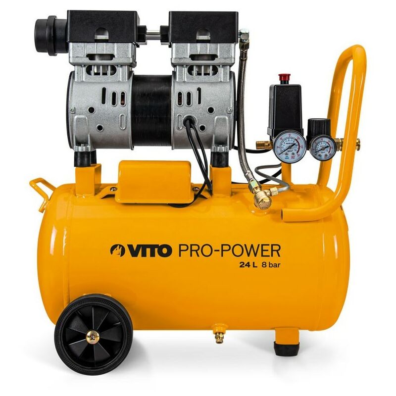 Il compressore d'aria VITO PRO-POWER è uno strumento indispensabile, sia in una falegnameria che in un'officina meccanica. In un'officina o in una stazione di servizio, viene utilizzato principalmente per soffiare l'aria negli pneumatici o per controllare la quantità di aria in essi contenuta. Può essere utilizzato anche per verniciare, sverniciare, forare, pinzare e persino soffiare. Con un compressore d'aria è possibile levigare superfici piane collegandolo a una levigatrice pneumatica. In combinazione con una chiodatrice pneumatica, può fissare i chiodi su un pavimento in legno. Il compressore d'aria VITO PRO-POWER facilita anche la verniciatura o la riverniciatura dei veicoli. In combinazione con un trapano ad aria compressa, può eseguire lavori di carrozzeria sull'auto. Evidenze: - Ideale per: soffiare, soffiare, pinzare, smerigliare, scalpellare, forare, usare la chiave a percussione... - Motore silenzioso: senza olio. - Attacchi rapidi. - 1 piede anteriore + 2 ruote fisse