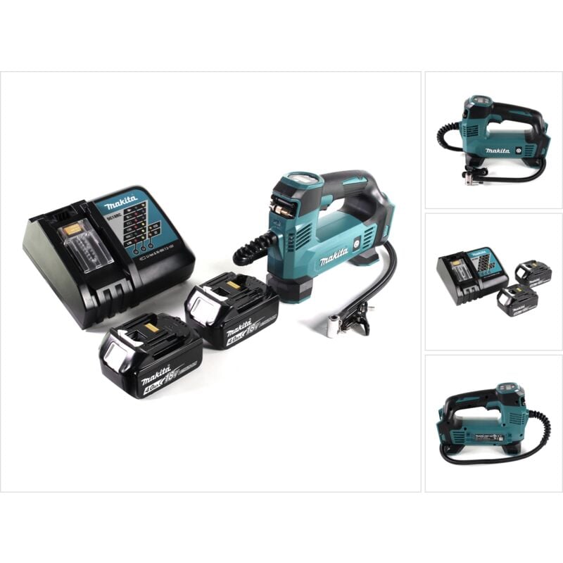 Contenuto della fornitura: - 1x Compressore a batteria Makita DMP 180 Z - 2x batteria Makita BL1840B 4,0 Ah ( 197265-4 ) - 1x caricabatterie Makita DC18RC ( 195584-2 ) - 1x adattatore valvola bicicletta - 1x adattatore francese - 1x adattatore a sfera Descrizione del prodotto: Quando si tratta di gonfiare pneumatici di auto/moto, palloni sportivi o piccoli pneumatici da nuoto, il compressore a batteria è lo strumento ideale. Il display e i pulsanti + / - consentono di preimpostare l'esatta pressione desiderata. Quando si raggiunge la pressione desiderata, il compressore si ferma per evitare un riempimento eccessivo. Il compressore raggiunge pressioni fino a 8,3 bar. L'apparecchio è dotato di un sistema di protezione degli utensili e della batteria. Questo sistema interrompe automaticamente l'alimentazione in caso di sovraccarico, surriscaldamento o scarico eccessivo per prolungare la durata dell'utensile e della batteria. Il tubo flessibile è lungo 0,65 m. L'utensile è abbastanza