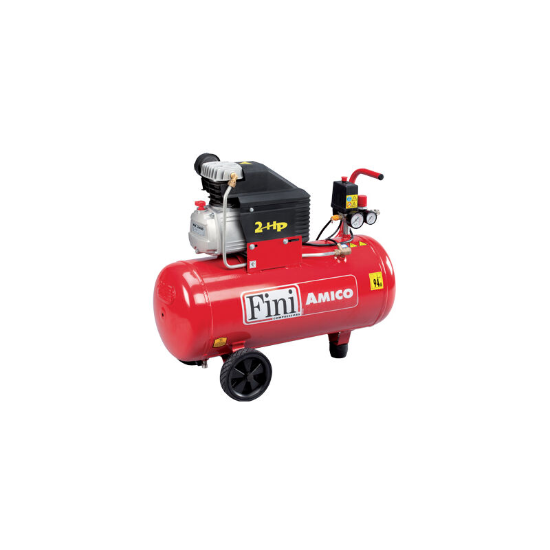 Carrellato, con serbatoio 50 lt., funzionamento completamente automatico comandato dal pressostato, dotato di rubinetto scarico condensa, valvola di sicurezza, manometri, riduttore di pressione. aspirazione 170 lt/min., potenza hp 2 - 2850 giri/min., pres