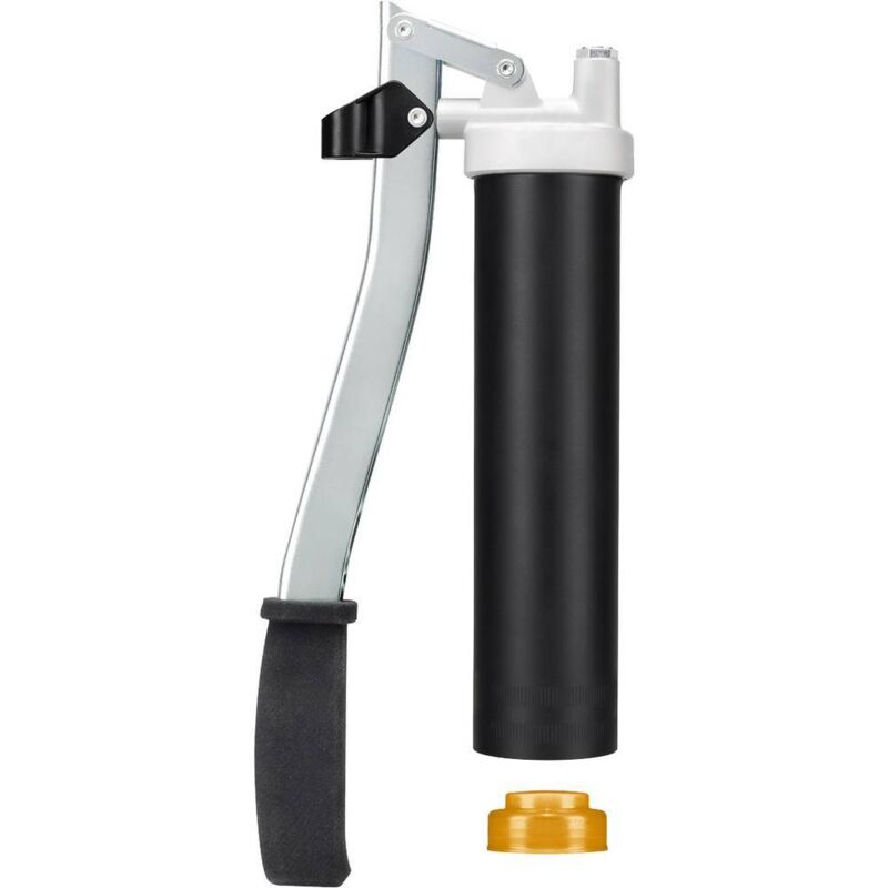 Con meccanismo senza molla. tramite il vuoto nella testa dell'ingrassatore, infatti, il pistone si muove in su e non ha bisogno di altri supporti, ma viene azionato senza minimo sforzo solo mediante la leva manuale. pressione di mandata fino a 400 bar, ma