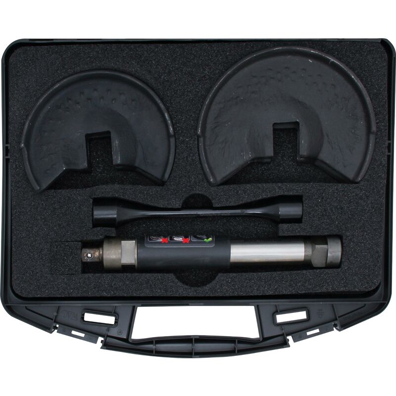 Pratico compressore per molle per l'uso quotidiano Per molle con Ø da 90 fino a 140 mm Particolarmente adatto per veicoli con una piccola apertura di soli Ø 30 mm nel braccio trasversale, ad esempio VW Touran, Citroën C3, Skoda Octavia, Peugeot 107 Adatto per sistemi di sospensione delle ruote a bracci trasversali doppi multilink Buona tenuta della molla grazie al portamolla angolato, che aumenta la sicurezza e la funzionalità L'inserto speciale previene il sovraccarico del tenditore a molla Forza di pressione mass. 15000 Nm Apertura min. 96 mm Apertura mass. 220 mm Comprensione della molla mass. 124 mm Oggetto della fornitura: 2 piastre tenditrici a molla da 90 a 120 mm 2 piastre tenditrici a molla da 120 a 140 mm Mandrino speciale Ø 30 mm per spazi ristretti Inserto speciale per la limitazione della coppia Peso del tessuto 4.516 Dimensioni dell'imballaggio 1 Peso lordo 4516 g