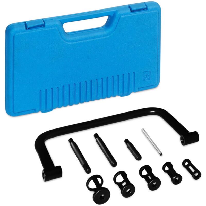 Compressore molle valvole MSW-VSK-2 di MSW Con i compressori per le molle delle valvole dalle forniture professionali di MSW è possibile montare e smontare le molle delle valvole nella testata rapidamente e con poco sforzo. Questo attrezzo per officine è adatto alla sostituzione delle molle delle valvole su auto o moto sia da parte di meccanici e autoconcessionari, sia di meccanici hobbisti. Il set per la compressione delle molle delle valvole è composto da una staffa, nonché da pressori e aste di pressione di diverse misure, con cui è possibile comprimere le molle in modo affidabile e preciso. A seconda del modello e delle dimensioni della testata, i pezzi possono essere efficacemente combinati tra loro, in modo che il set possa essere utilizzato su una vasta gamma di veicoli. I pressori, le aste di pressione e la staffa sono realizzati in acciaio durevole che può sopportare carichi elevati. La lavorazione di alta qualità delle singole parti dell'utensile permette un funzionamento