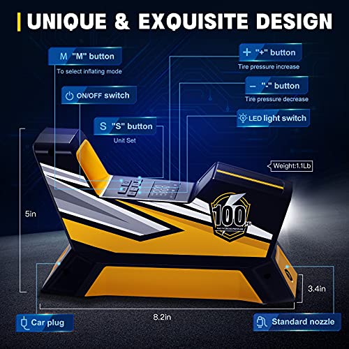 Compressore Portatile per Auto,Mini Compressore Aria Elettrica,150PSI 12V Pressione Gonfiatore Digitale con Luce LED e Sensore Pressione per Gonfiare Le Gomme delle Moto e delle Auto, Palloni, Bici
