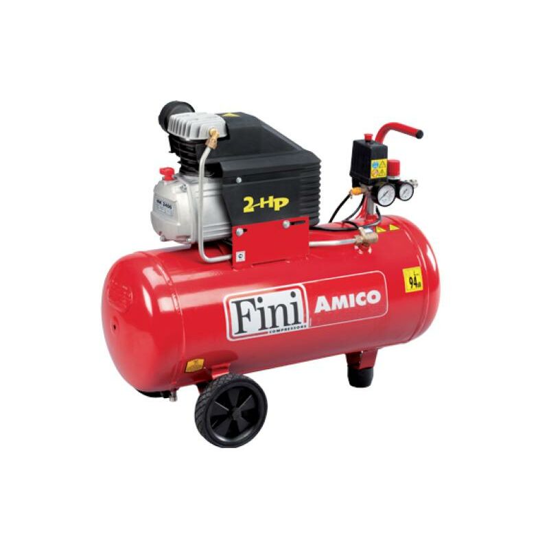 Carrellato, con serbatoio 50 Lt., funzionamento completamente automatico comandato dal pressostato, dotato di rubinetto scarico condensa, valvola di sicurezza, manometri, riduttore di pressione. Aspirazione 170 lt/min., potenza hp 2 - 2850 giri/min., pressione max. 8 bar