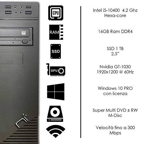 Computer fisso intel i5-10400 16gb ram 1tb ssd con scheda video GT-1030 da 2 GB windows 10 pro con licenza wifi incluso hdmi