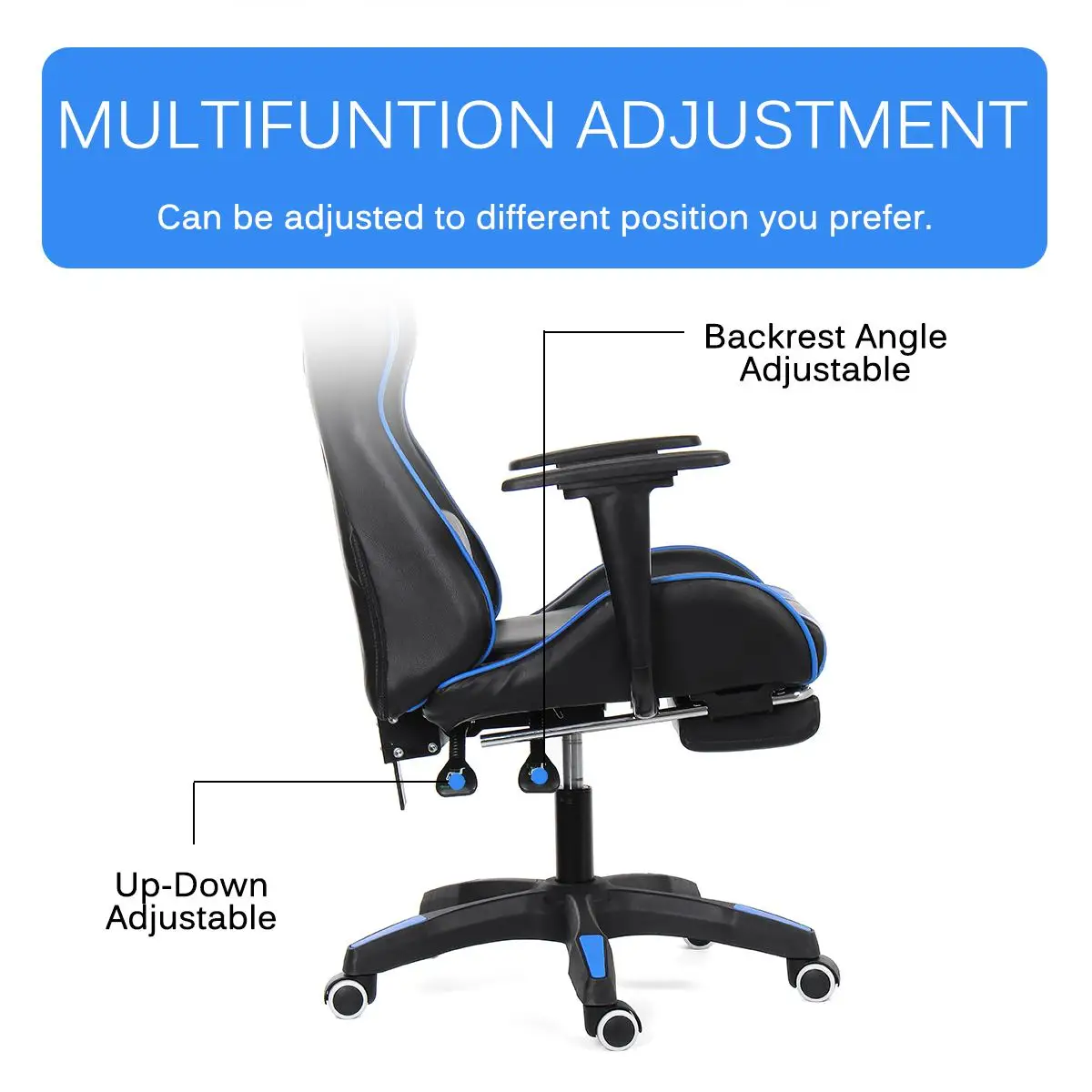Computer Office Racing Gamer Chair WCG Gamig Chair Office Footrest Chair Gaming Leather Internet Cafe Swivel Lying Armchair