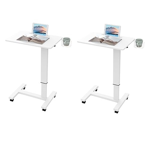 Computer scrivania Regolabile in Altezza da Tavoloa,Piccola scrivania con ruote,tavolo da letto,tavolo pieghevole,per camera da letto, soggiorno,Angolo Angolare Tavolo,2Pcs 60x40x94cm,Bianco