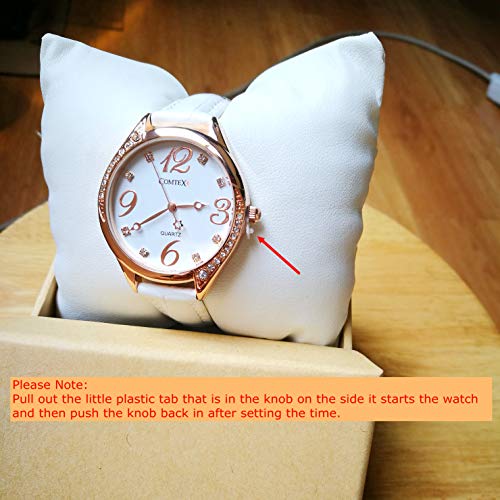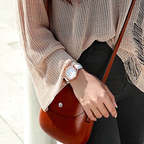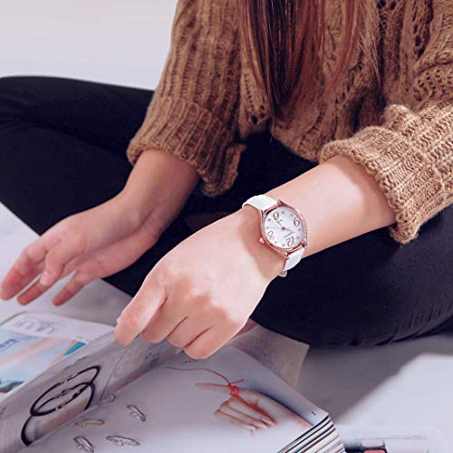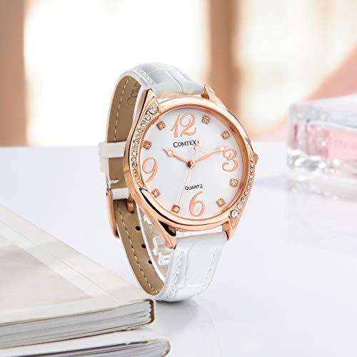 Comtex Orologio analogico da polso da donna,cinturino in pelle,impermeabile (Bianco(oro rosa))