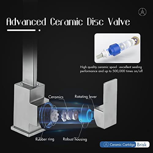 【ALTA QUALITÀ】Il rubinetto del lavandino utilizza una valvola in ceramica ad alte prestazioni per garantire una regolazione facile e precisa della temperatura e del flusso d'acqua.utilizzando il nucleo della valvola in ceramica per garantire che sia sottoposto a 600.000 test per essere al 100% senza perdite.