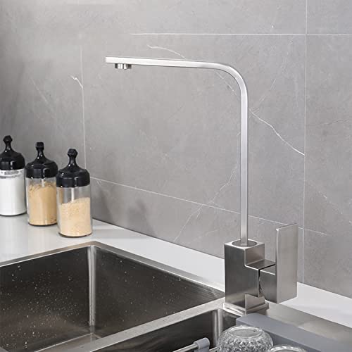 【PROCESSO RIGOROSO】 Il rubinetto da cucina è realizzato in acciaio inossidabile 304 di alta qualità,offre una migliore tenuta stagna. Grazie alla superficie spazzolata, è molto resistente ai graffi e all'abrasione, non lascia impronte digitali e macchie d'acqua, facile da pulire.