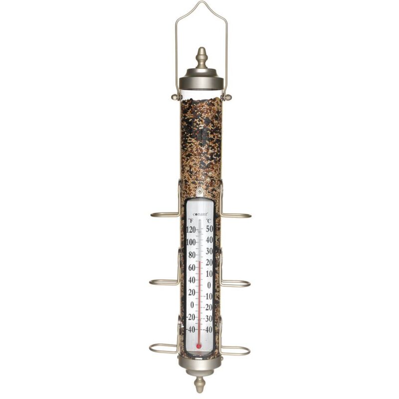Due in uno Combinazione prodotto/godere gli uccelli e tenere traccia di temperatura esterna allo stesso tempo. Resistente qualità ottica tubo che in policarbonato stabilizzato ai raggi UV e non ingiallisce crazing. Frizione Fit superiore e sgancio rapido inferiore per riempimento facile e per una facile pulizia. Facile leggere grande scala termometro. Costruzione in alluminio anodizzato, resistente per una bella finitura in colori popolari esterno mobili e hardware.