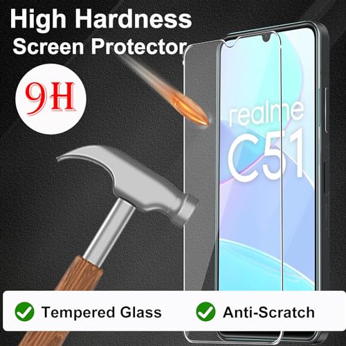 CONAPIKA Cover per Realme C51 con 3 Pezzi Vetro Temperato, Ultra Sottile Morbido Antiurto Anticaduta Paraurti Protettiva Case Flessibile TPU Anti-Graffio Anti-Impronta Telefono Custodia Cover