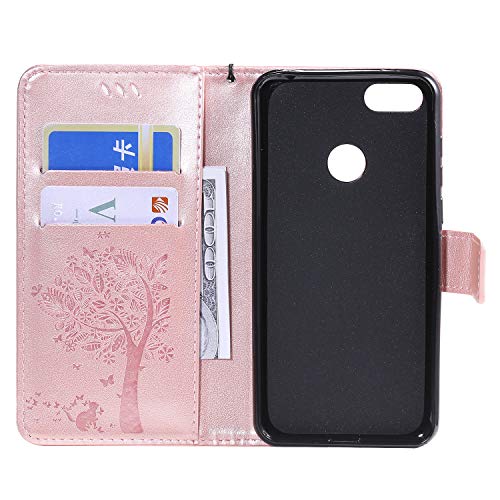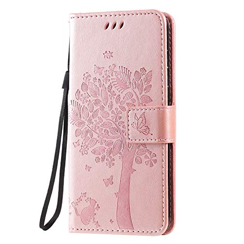 Conber Cover per LG K40S, Custodia in Pelle PU con Interno TPU Antiurto, Serie Gatto e Albero Flip Case Cover Custodia Portafoglio per LG K40S - Oro rosa