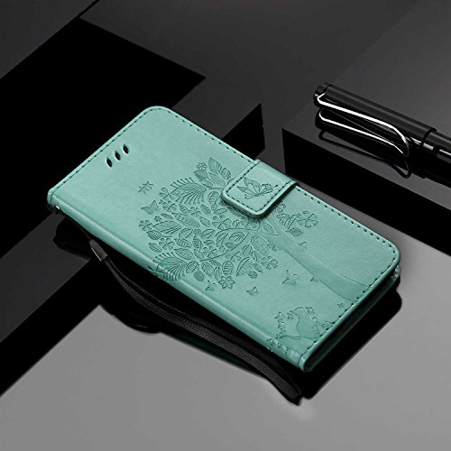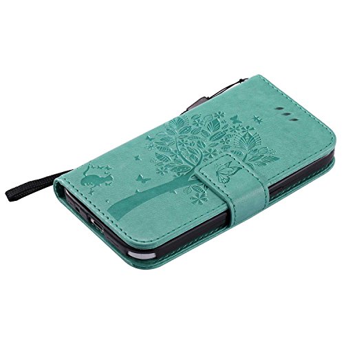 Conber Cover per Samsung Galaxy Core Prime, Custodia in Pelle PU con Interno TPU Antiurto, Serie Gatto e Albero Flip Case Cover Custodia Portafoglio per Samsung Galaxy Core Prime - Verde