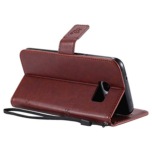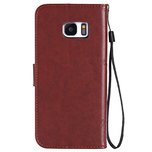 Conber Cover per Samsung Galaxy S7 Edge, Custodia in Pelle PU con Interno TPU Antiurto, Serie Gatto e Albero Flip Case Cover Custodia Portafoglio per Samsung Galaxy S7 Edge - Caffè