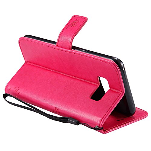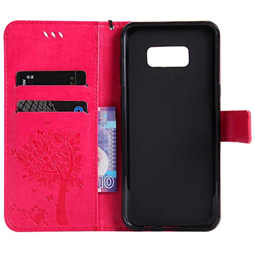 Conber Cover per Samsung Galaxy S8 Plus, Custodia in Pelle PU con Interno TPU Antiurto, Serie Gatto e Albero Flip Case Cover Custodia Portafoglio per Samsung Galaxy S8 Plus - Fucsia