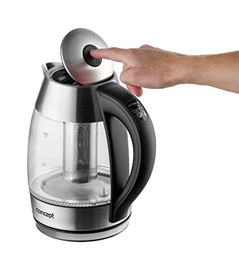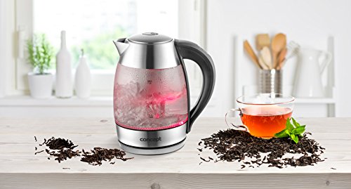 Concept Elettrodomestici RK4066 Bollitore Elettrico Vetrato con Regolazione Termica e Colino da tè Rimuovibile, 2200 W, 1.8 Litri, Trasparente