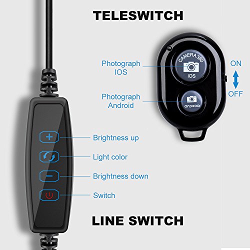 K&F Concept Luce ad anello, Anello Luminoso Selfie con Supporto per Cellulare Ring Light LED 3 Modalità con Telecomando Bluetooth per Trucco, Live Stream, Youtube, Facebook, Tiktok
