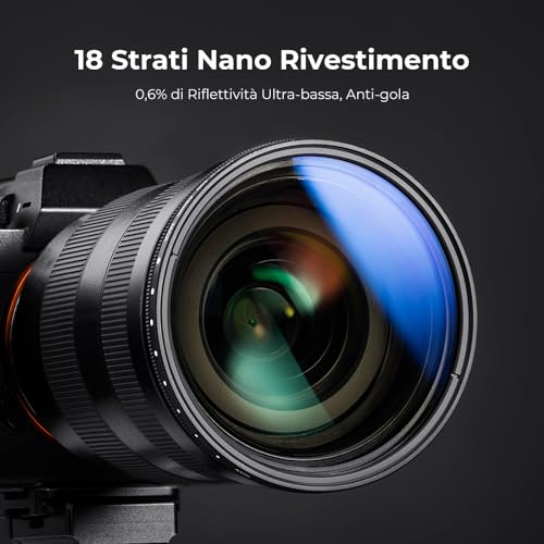 【Vetro Ottico di Alta Qualità】 Filtro K&F Concept a densità variabile in vetro ottico giapponese di alta gamma, produce un riflesso efficacemente ridotto dal filtro stesso e senza abbaglio, garantendo migliora nitidezza e fedeltà dei colori.