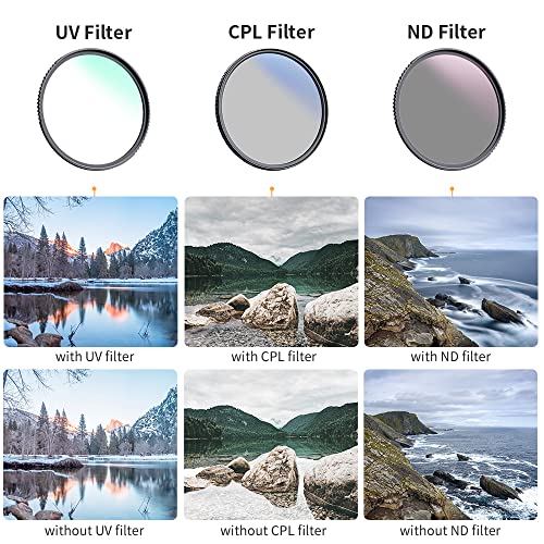 K&F Concept Nano-K Kit di Filtri UV/CPL/ND per Obiettivo da 67mm, Filtro UV + Polarizzatore Filtro + Filtri a Densità Neutra (ND4) + Tasca per Filtro