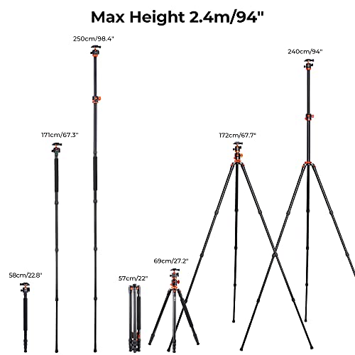 K&F Concept Treppiedi per fotocamera da 94 pollici, 4 sezioni, ultra alto, in alluminio, professionale, staccabile, monopiede, con testa a sfera a 360 gradi, piastra a sgancio rapido per fotocamere DSLR SLR T254A8+BH-28L (SA254T1)