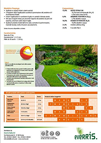 Questo prodotto è adatto per la manutenzione di tappeti erbosi, superfici ricreative, bordure ed ornamentali, alberature ed altre colture in genere. È un concime a cessione controllata dall'ampia durata d'azione, utilizzabile a ridotti dosaggi che, grazie al contenuto bilanciato dei nutrienti, garantisce la qualità dei risultati. Il 25% dell'azoto è avvolto Poly-S.