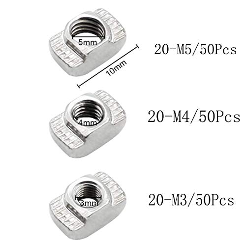 Concisea 150 Pezzi M3, M4, M5,Dado a T-Scanalatura in Acciaio al Carbonio Placcato Zincato,T-Scanalatura Dado Femmina d'Argento in per Profilo di Alluminio Accessori Standard Europeo