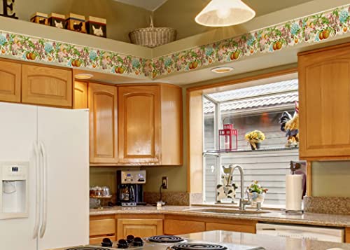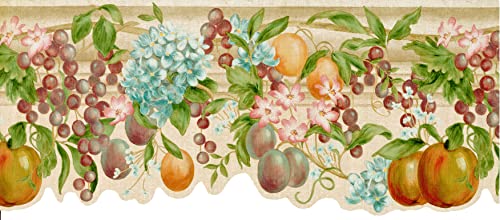 CONCORD WALLCOVERINGS Floreale Vite Fiori Foglie Frutta Bordo Carta da Parati per Sala da Pranzo Cucina Cottage Fattoria, Verde Arancione Rosa Marrone Beige, 10,25 Pollici per 15 Piedi KH5960B